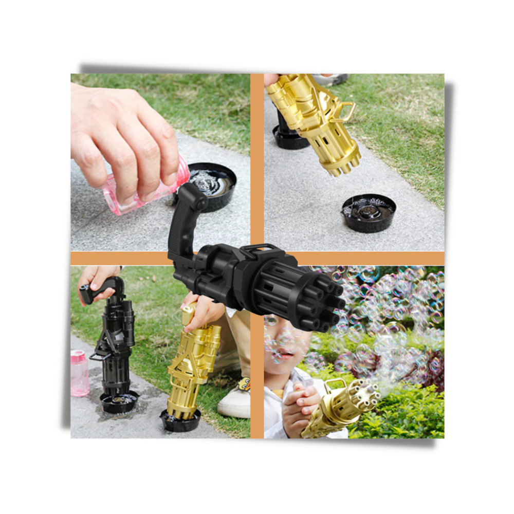 The bubble gun is light and compact, making it easy for the little ones to carry and handle. The bubble gun is powered by 4 AA batteries making it easy to carry around, so you can take it with you on outings, holidays, and trips to keep your children occupied with a fun and creative activity that will keep them away from electronic devices.