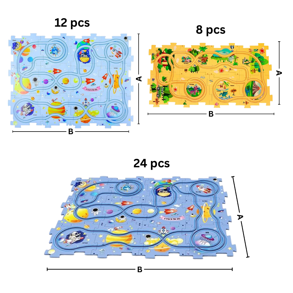 The Educational Electric Car Track Set comes in various captivating themes, including dinosaurs, forest, space, and ocean, ensuring that there is a set to appeal to every child’s interests. These diverse themes provide a rich and varied play experience, allowing children to explore different scenarios and environments. Each theme comes with unique modules and pieces, such as themed houses, bridges, and traffic lights, that can be assembled to create imaginative and detailed scenes. This versatility keeps the play experience fresh and engaging, encouraging children to use their creativity and imagination in new and exciting ways.