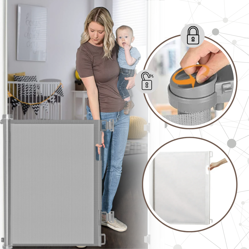 Introducing the Retractable Sturdy Mesh Pet & Baby Gate, a versatile retractable gate that ensures safety for both children and pets. Combining ease of use with sturdy construction, this sleek gate provides a flexible and reliable safety solution for any home, giving peace of mind to parents and pet owners alike.